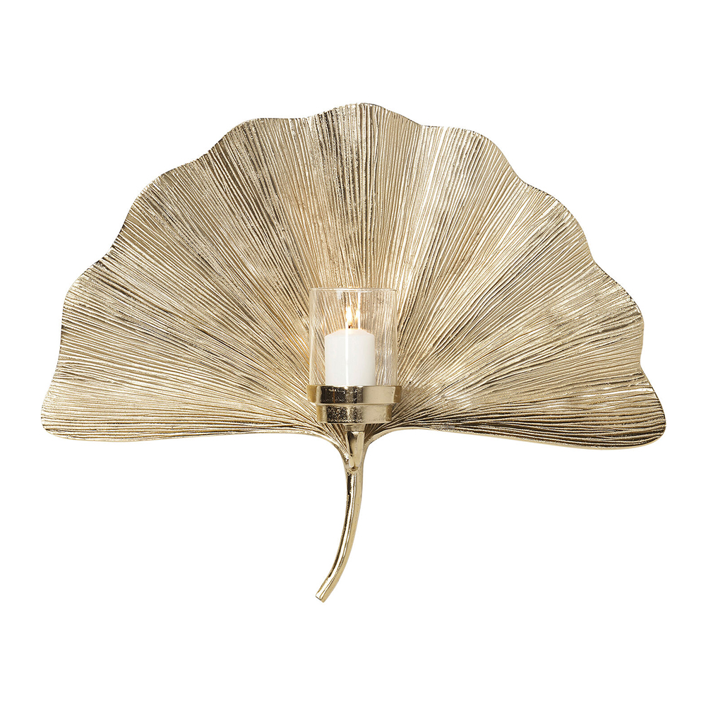 Большой Настенный Подсвечник золотой Лист Пальмы