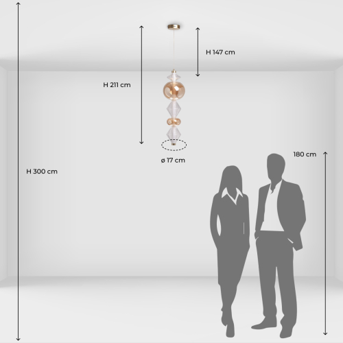 Подвесной светильник с вертикальной композицией из прозрачных и янтарных стеклянных шаров и ромбов Gabriel Scott Luna