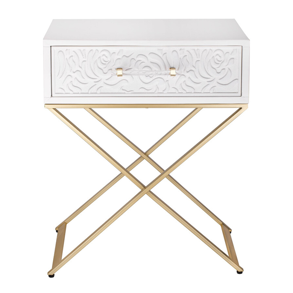 Приставной столик с выдвижным ящиком White Table Carved Pattern